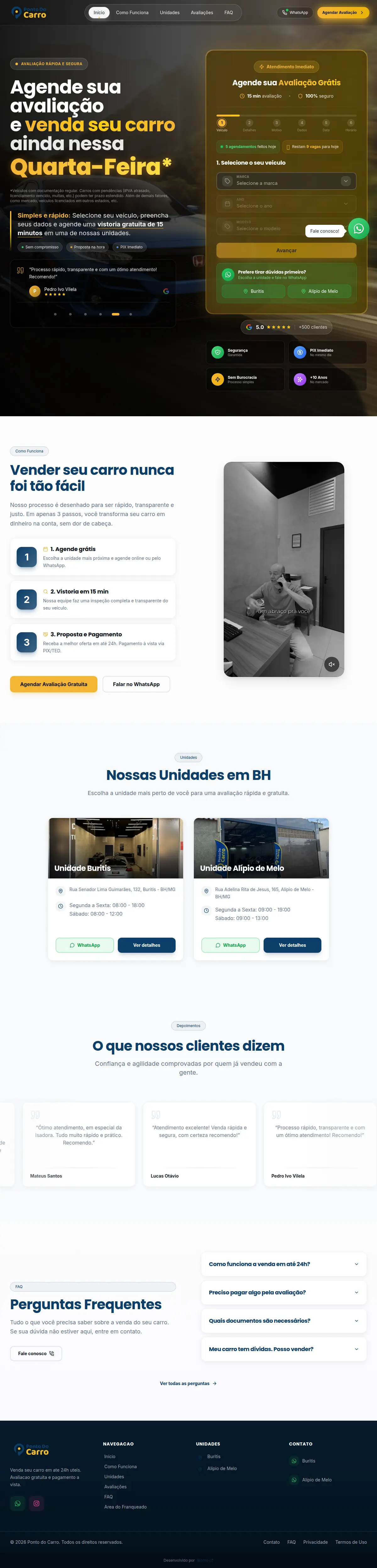 Landing page para corretora de veículos com foco em conversão e processo simplificado.